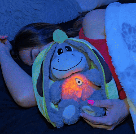 The plushie produces a soothing breathing rhythm that encourages your body to mirror it—helping slow your heart rate, relax your muscles, and prepare your mind for deep sleep. Just hug it and breathe with it.